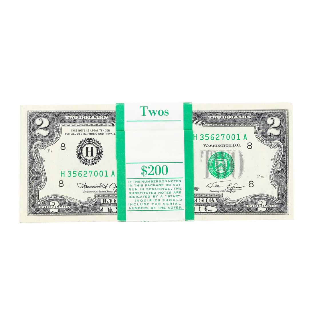 Pack of (100) Consecutive 1976 $2 Federal Reserve Notes Uncirculated St. Louis