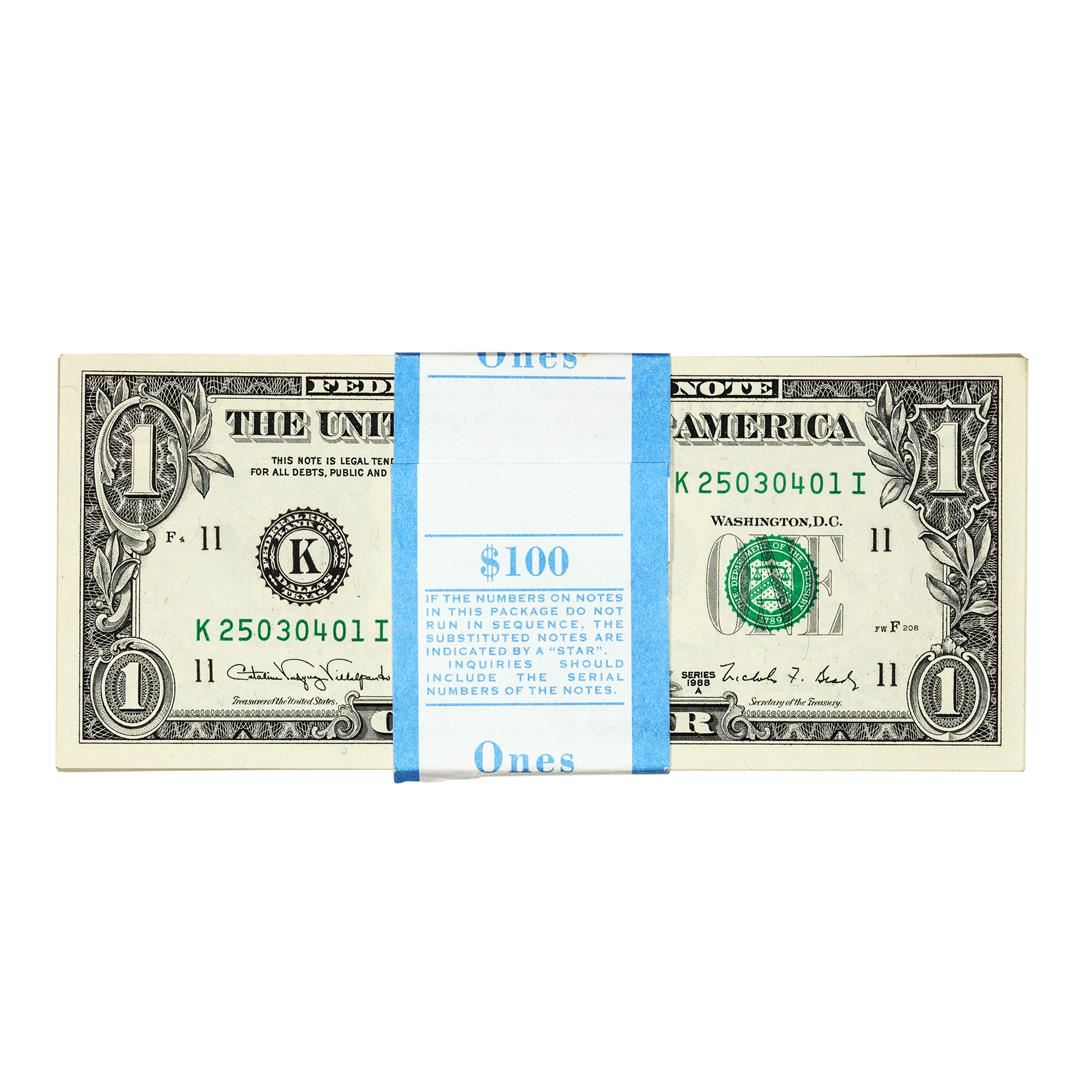 One Pack of (100) Consecutive 1988A $1 Federal Reserve Notes Dallas.