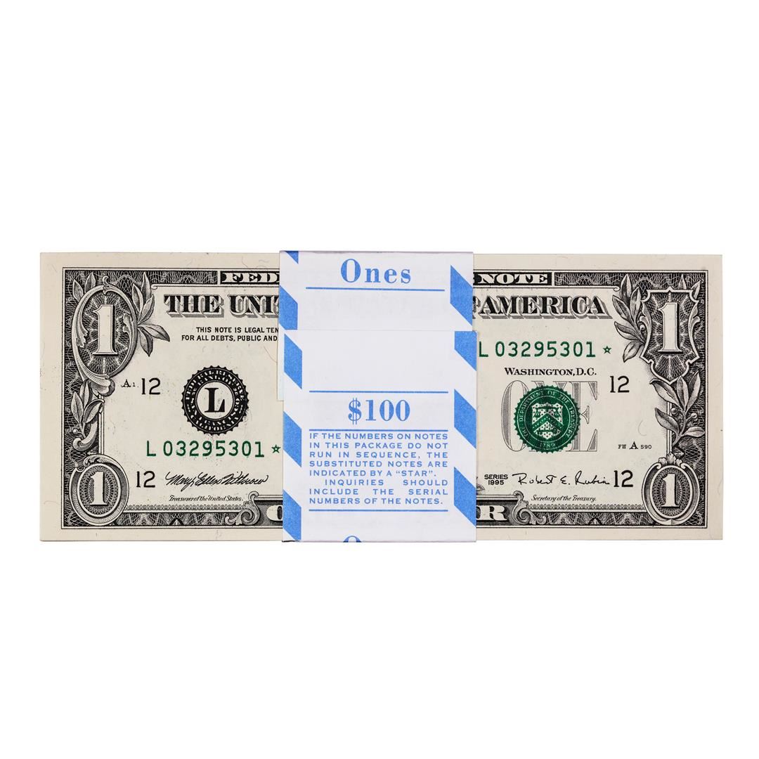 Pack of (100) Consecutive 1995 $1 Federal Reserve STAR Notes San Francisco