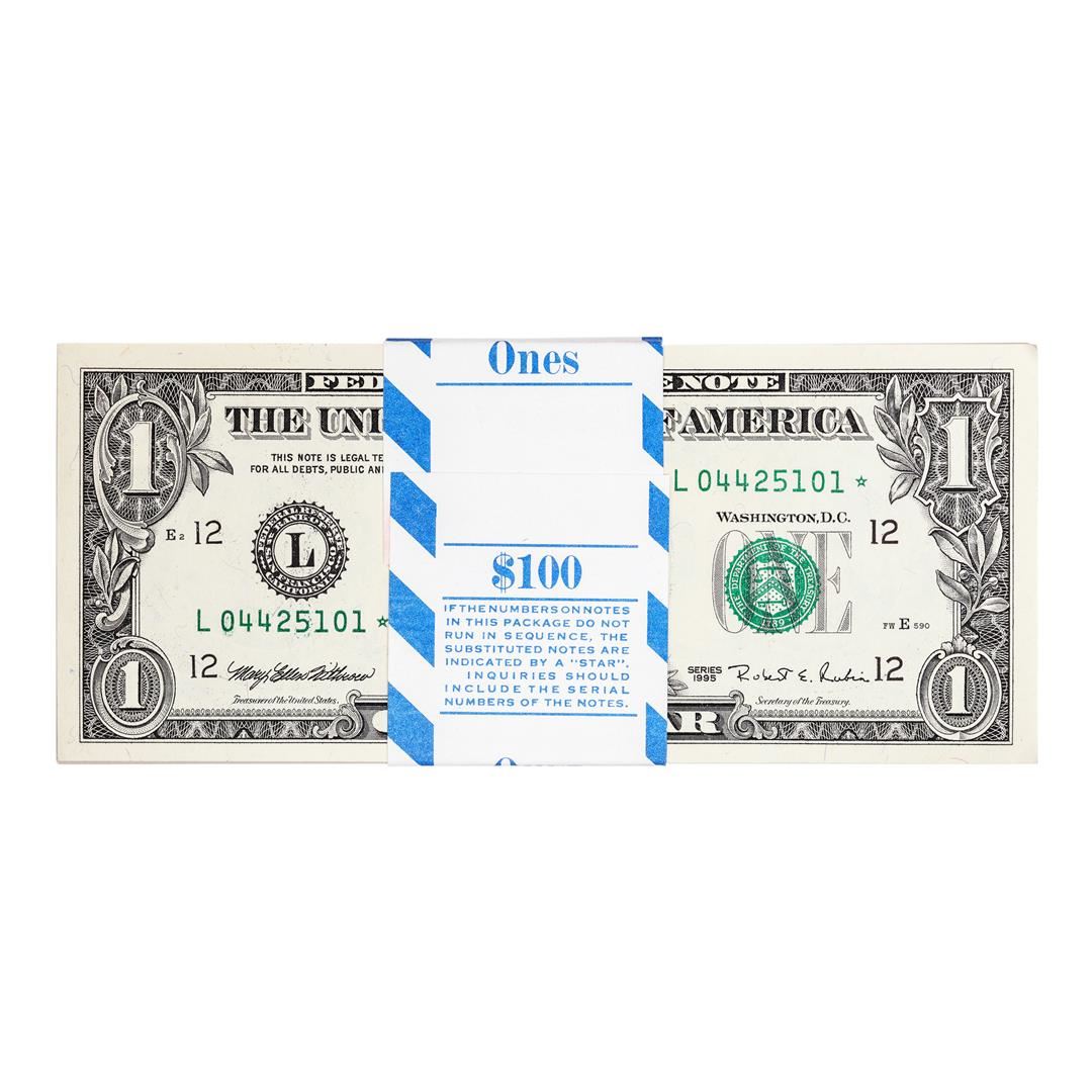 Pack of (100) Consecutive 1995 $1 Federal Reserve STAR Notes San Francisco