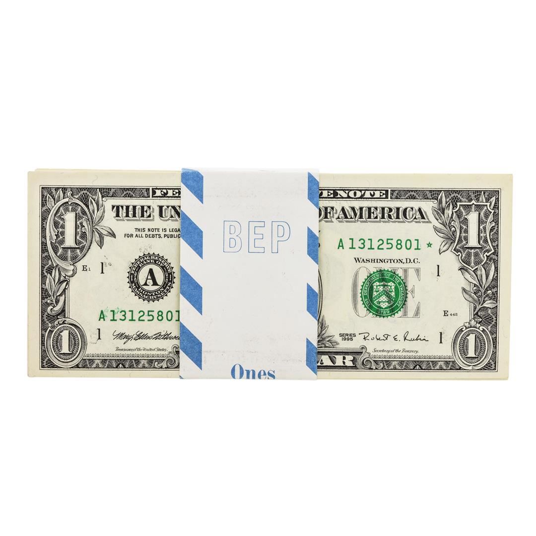Pack of (100) Consecutive 1995 $1 Federal Reserve Star Notes Boston