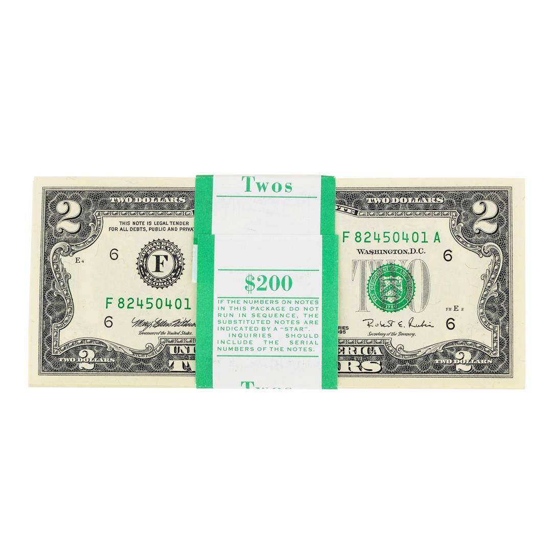 One Pack of (100) Consecutive 1995 $2 Federal Reserve Notes Atlanta.