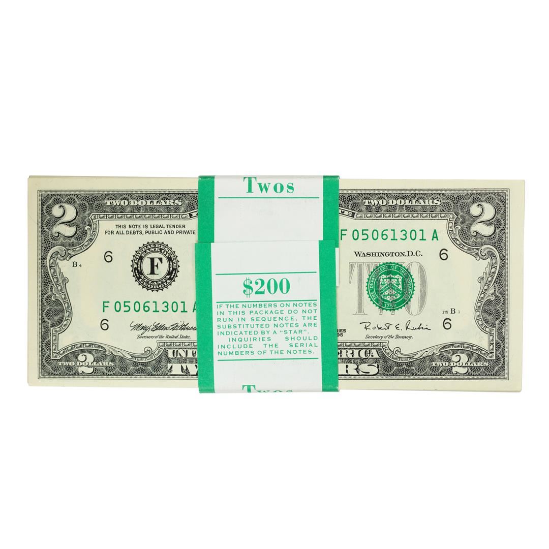 One Pack of (100) Consecutive 1995 $2 Federal Reserve Notes Atlanta.