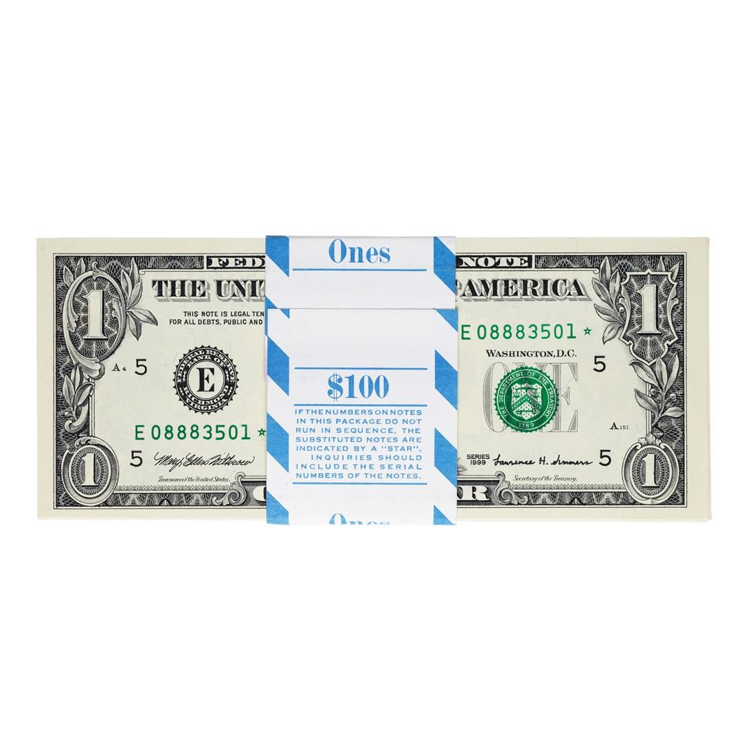 One Pack of (100) Consecutive 1999 $1 Federal Reserve STAR Notes Richmond Uncirculated.