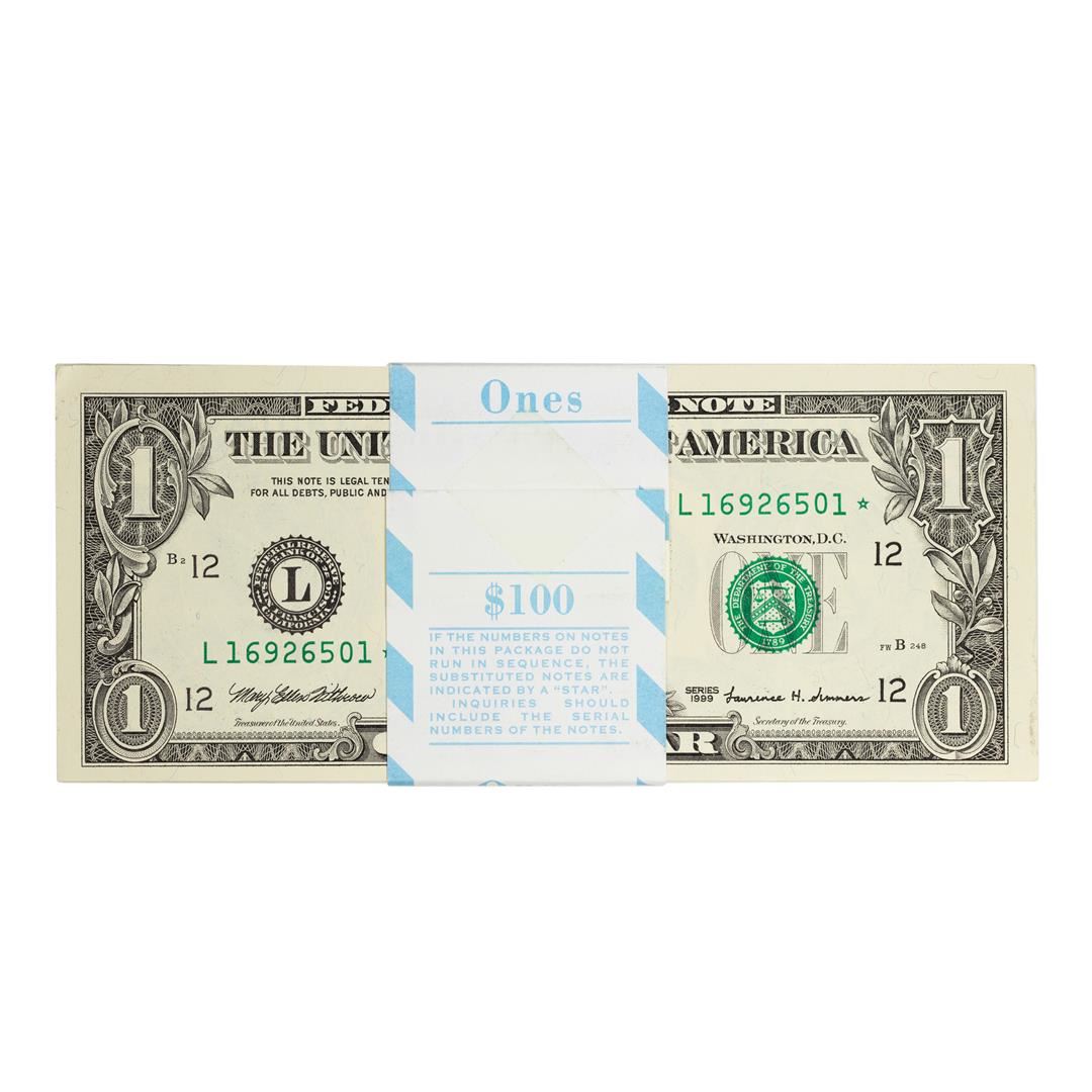 Pack of (100) Consecutive 1999 $1 Federal Reserve STAR Notes San Francisco