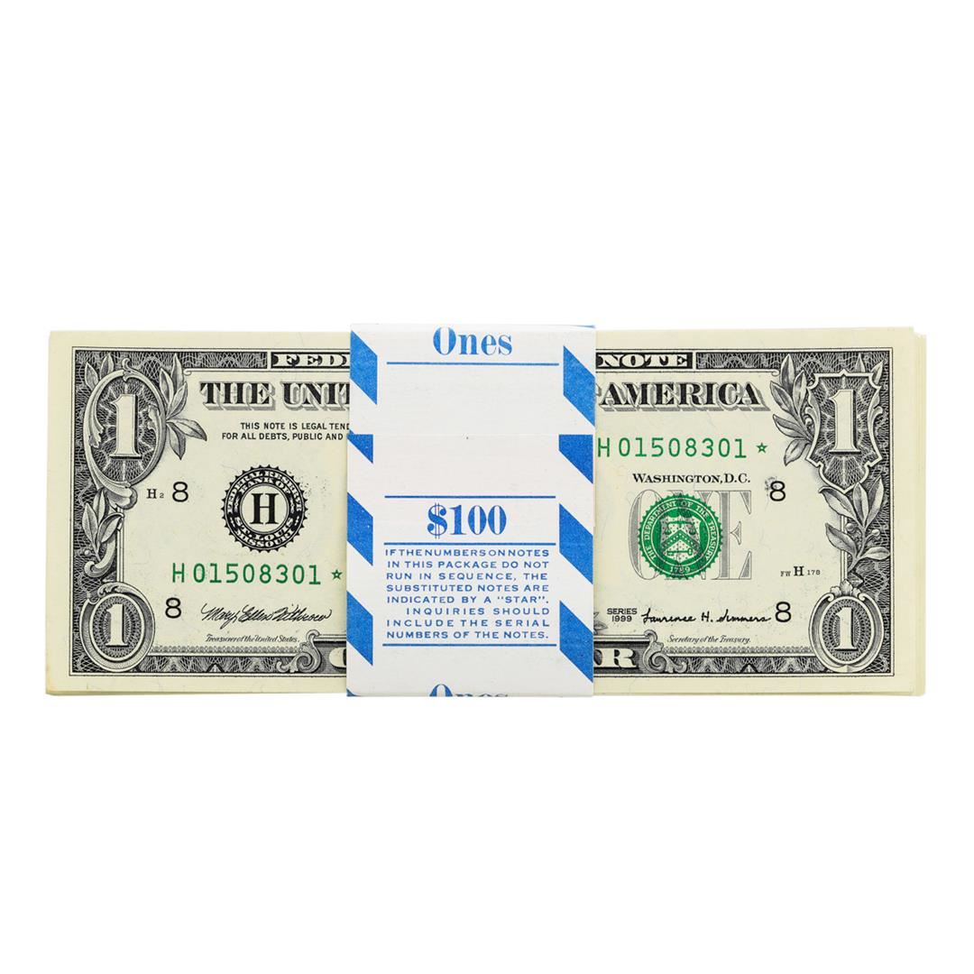 Pack of (100) Consecutive 1999 $1 Federal Reserve STAR Notes St. Louis