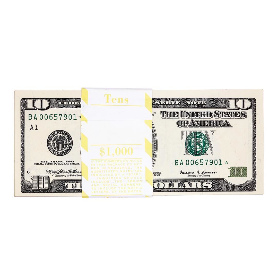 One Pack of (100) Consecutive 1999 $10 Federal Reserve STAR Notes.