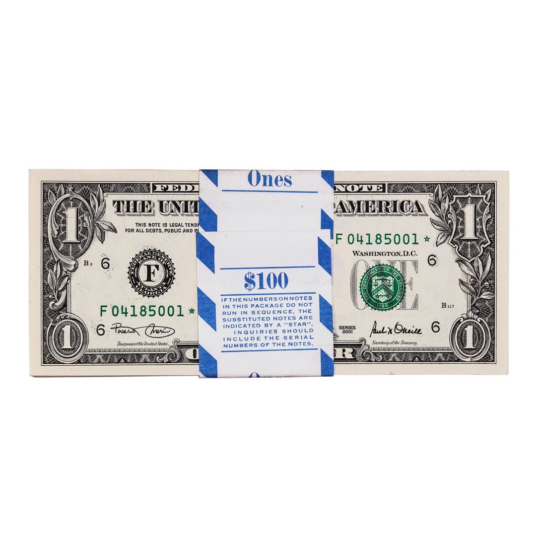 Pack of (100) Consecutive 2001 $1 Federal Reserve STAR Notes Atlanta
