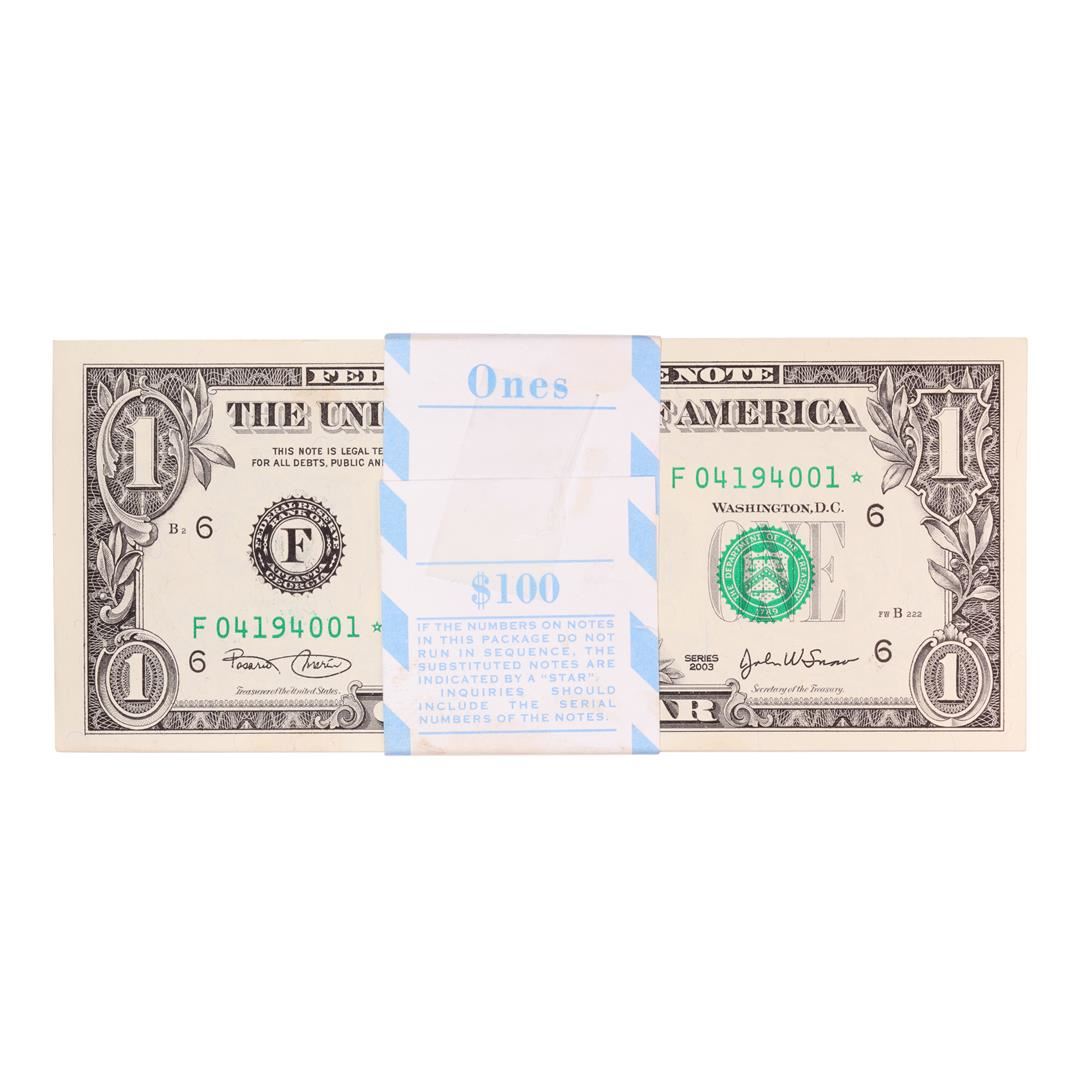 Pack of (100) Consecutive 2003 $1 Federal Reserve STAR Notes Atlanta