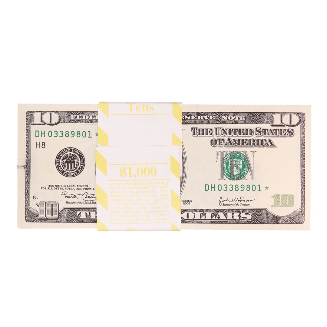 One Pack of (100) Consecutive 2003 $10 Federal Reserve STAR Notes Minor Ink Smear.