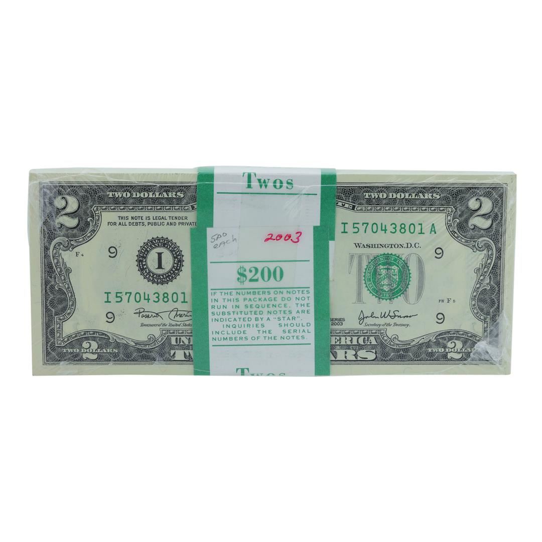 Pack of (100) Consecutive 2003 $2 Federal Reserve Notes Minneapolis