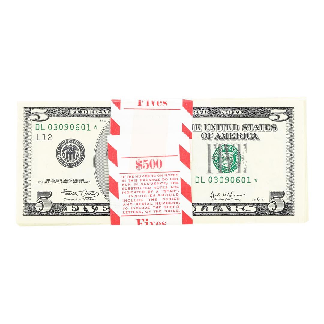 Pack of (100) Consecutive 2003 $5 Federal Reserve STAR Notes Uncirculated