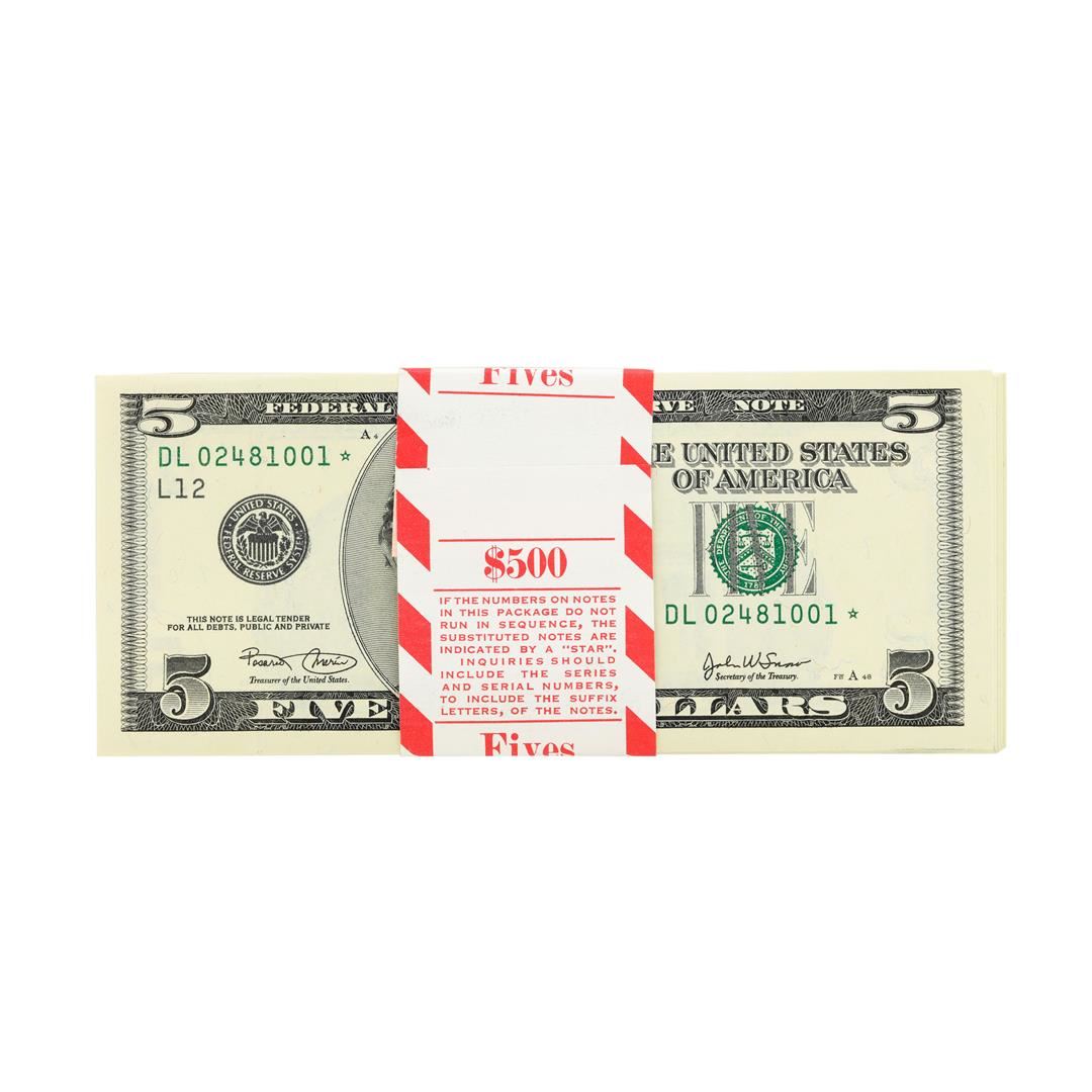 Pack of (100) Consecutive 2003 $5 Federal Reserve STAR Notes Uncirculated