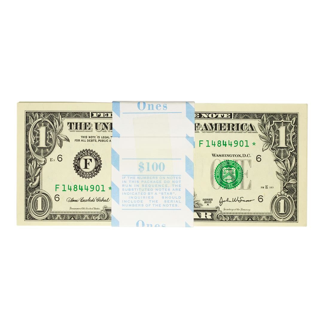 Pack of (100) Consecutive 2003A $1 Federal Reserve STAR Notes Atlanta