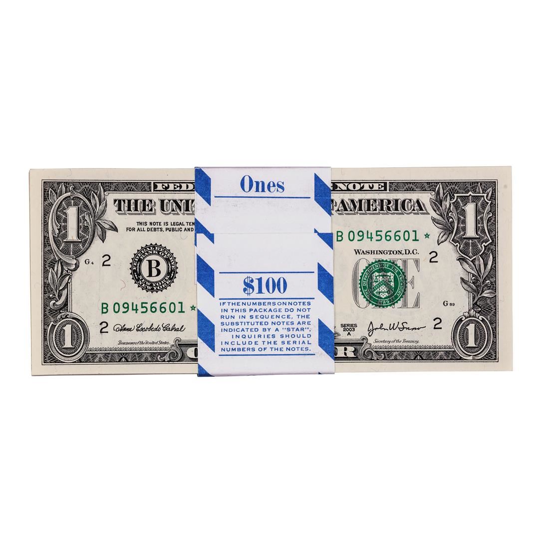 Pack of (100) Consecutive 2003A $1 Federal Reserve STAR Notes New York