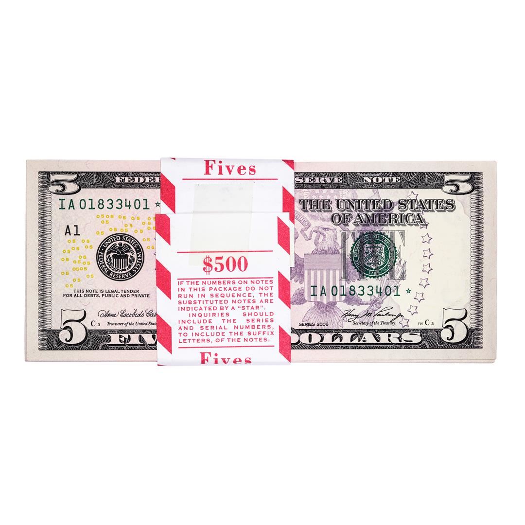 One Pack of (100) Consecutive 2006 $5 Federal Reserve STAR Notes.