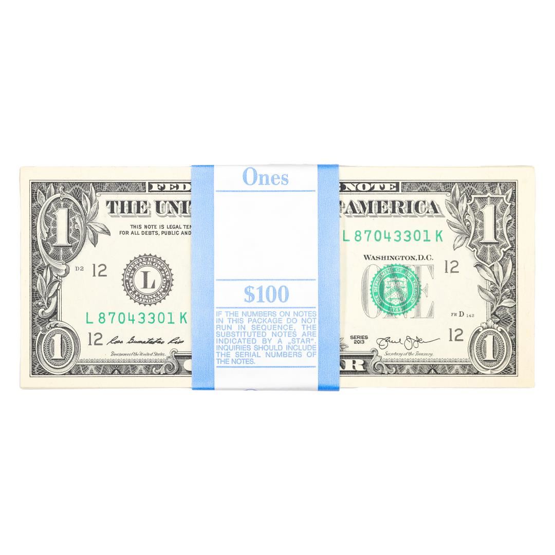 Pack of (100) Consecutive 2013 $1 Federal Reserve Notes San Francisco