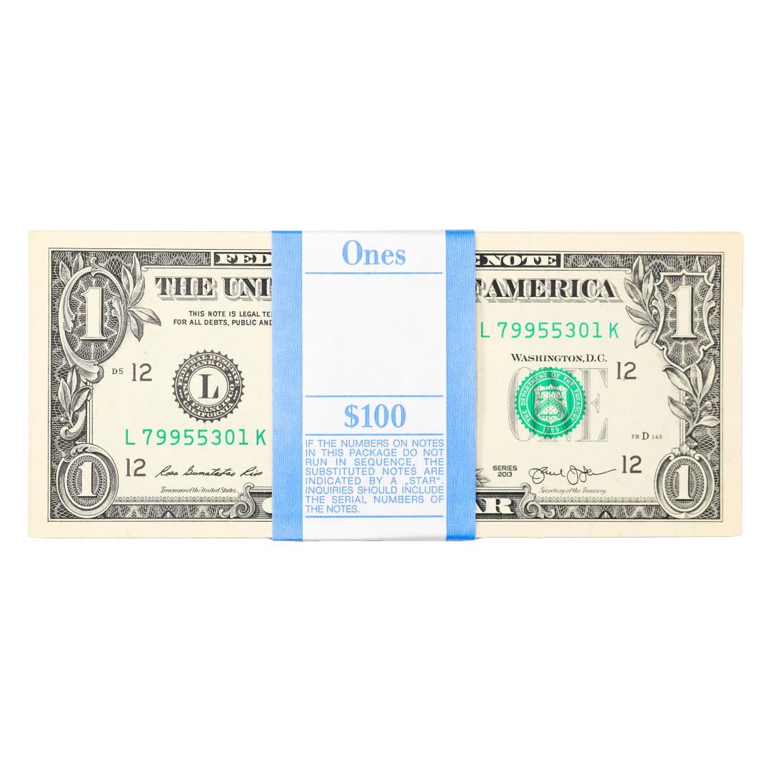 Pack of (100) Consecutive 2013 $1 Federal Reserve Notes San Francisco