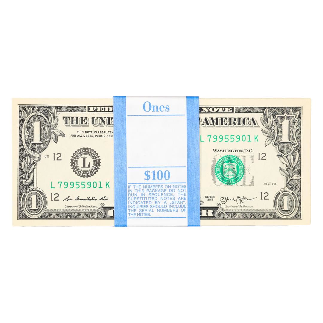 Pack of (100) Consecutive 2013 $1 Federal Reserve Notes San Francisco