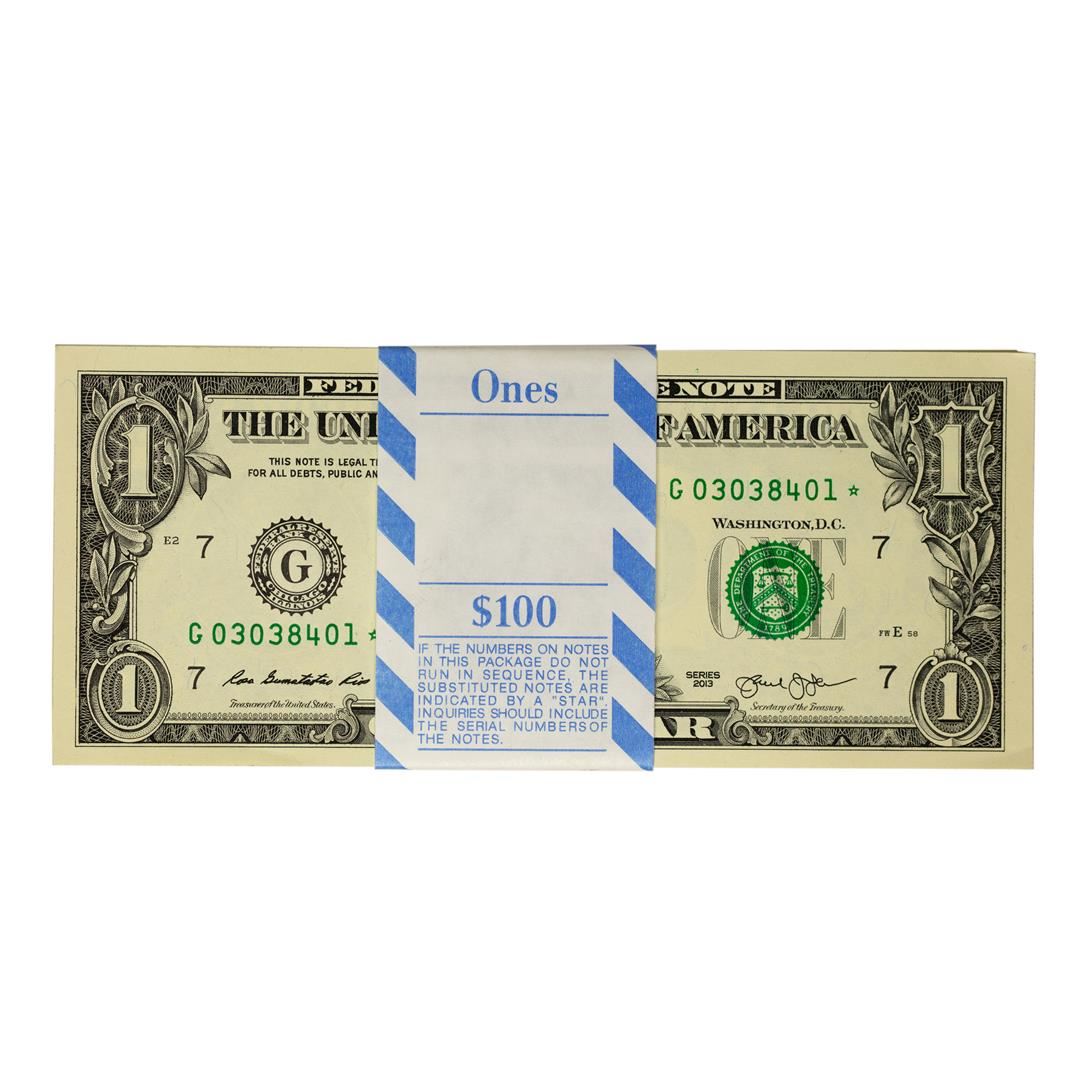 Pack of (100) Consecutive 2013 $1 Federal Reserve STAR Notes Chicago