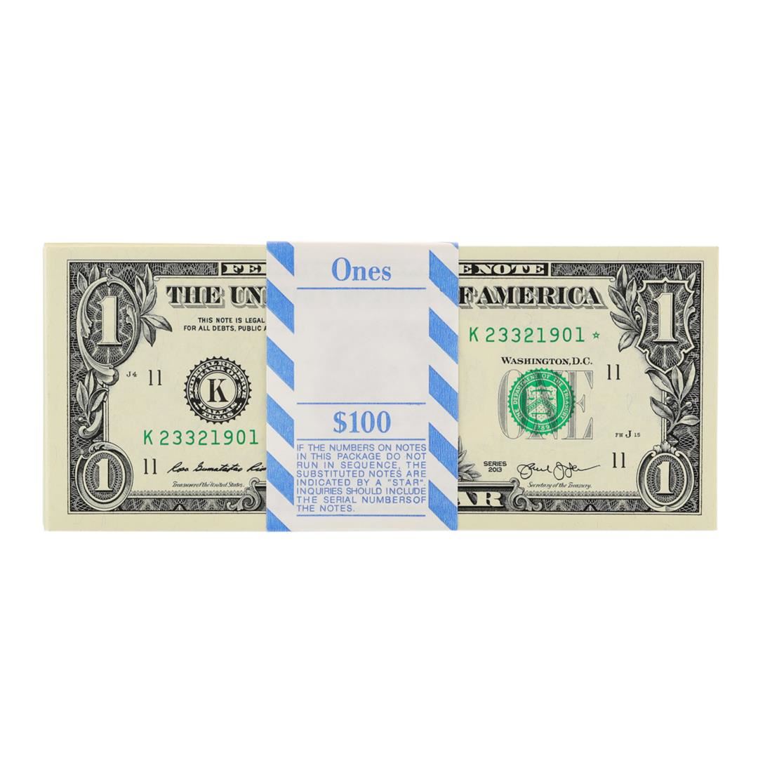 Pack of (100) Consecutive 2013 $1 Federal Reserve STAR Notes Dallas