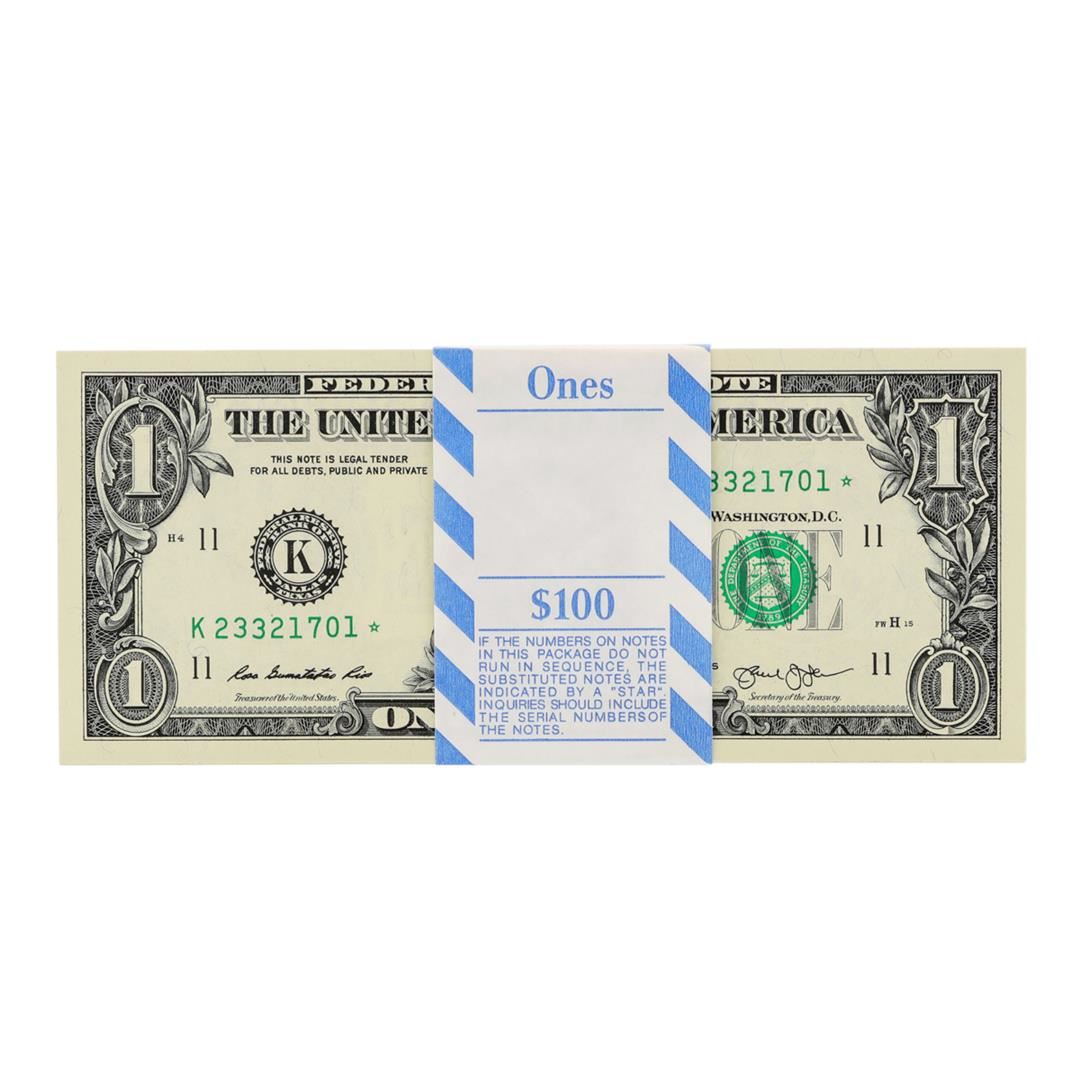 Pack of (100) Consecutive 2013 $1 Federal Reserve STAR Notes Dallas