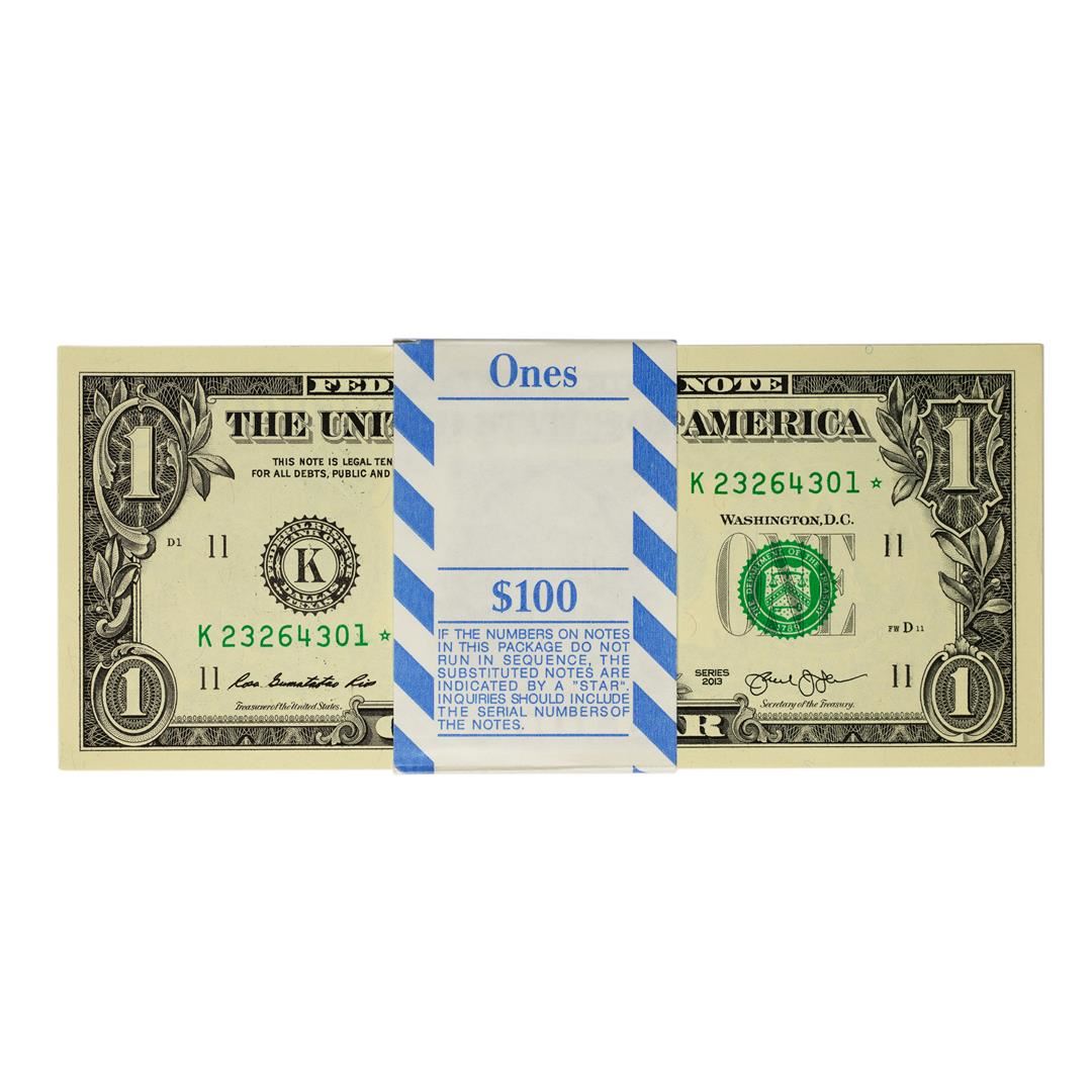 Pack of (100) Consecutive 2013 $1 Federal Reserve STAR Notes Dallas