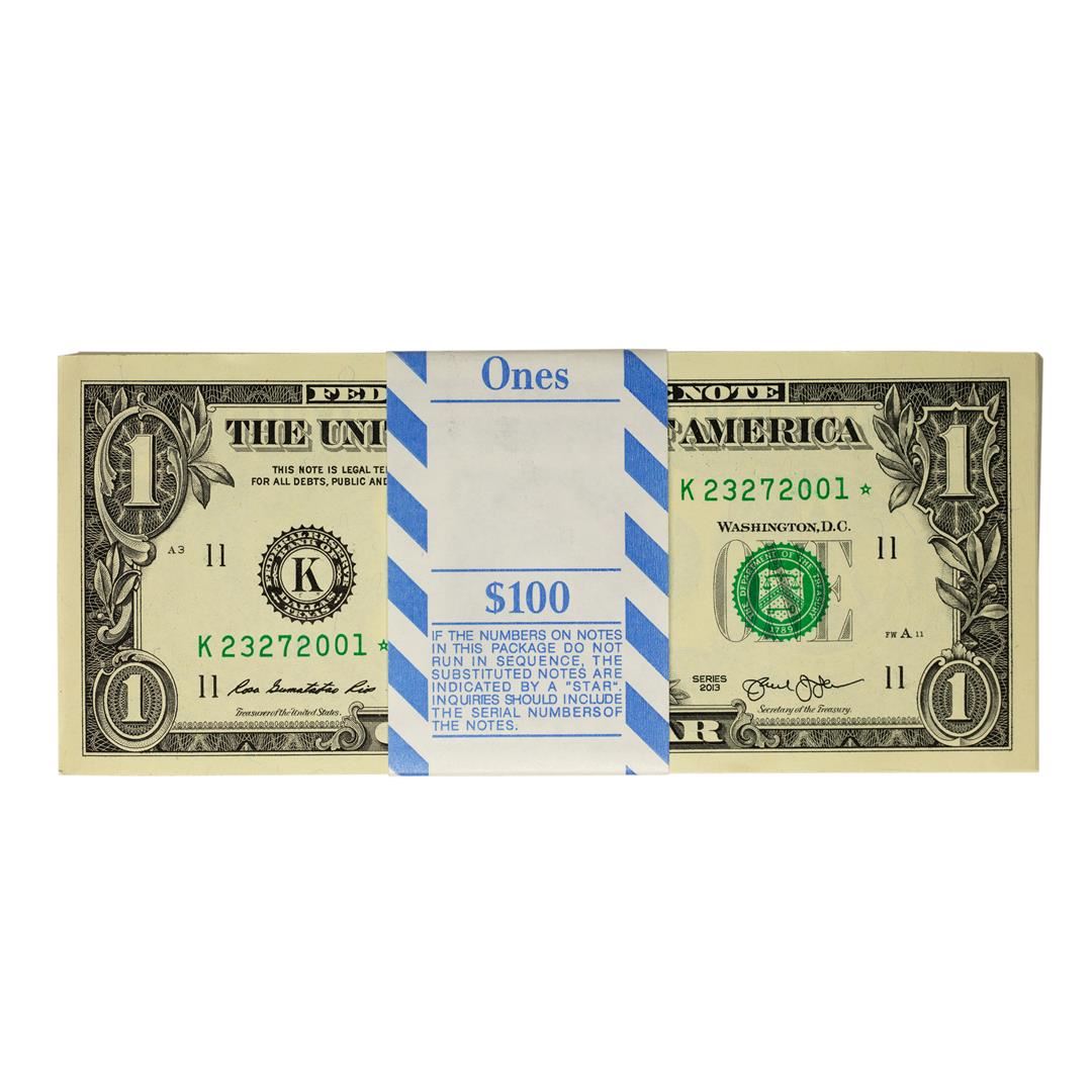 Pack of (100) Consecutive 2013 $1 Federal Reserve STAR Notes Dallas