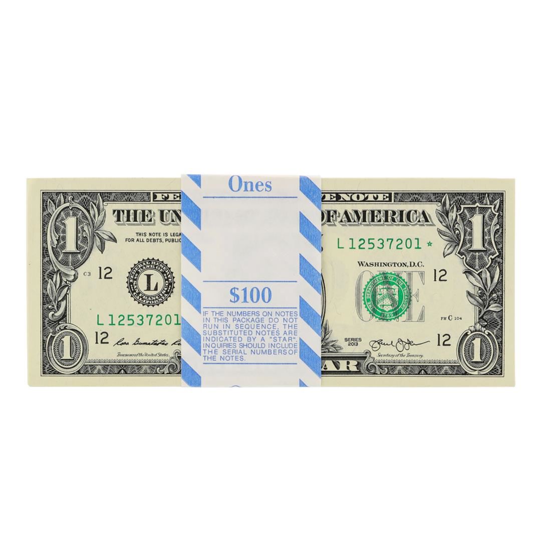 Pack of (100) Consecutive 2013 $1 Federal Reserve STAR Notes San Francisco