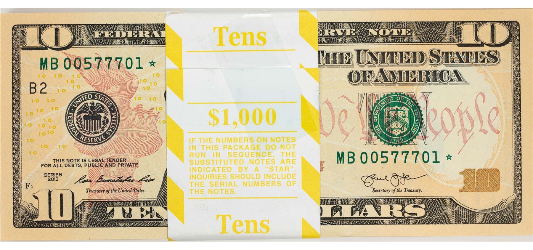 One Pack of (100) Consecutive 2013 $10 Federal Reserve Star Notes.