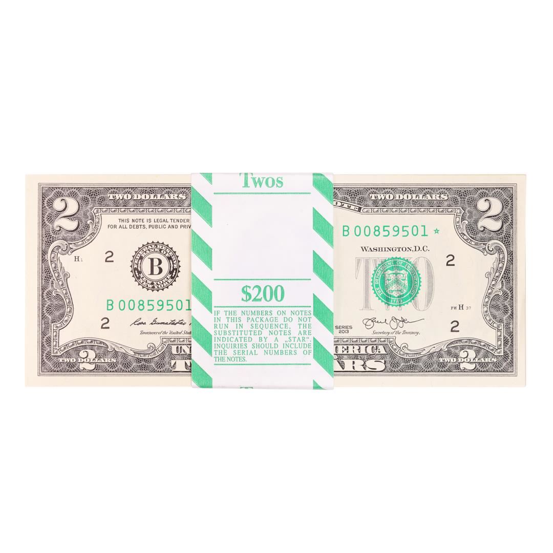 Pack of (100) Consecutive 2013 $2 Federal Reserve STAR Notes New York