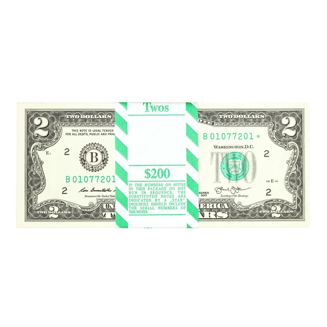 Pack of (100) Consecutive 2013 $2 Federal Reserve STAR Notes New York