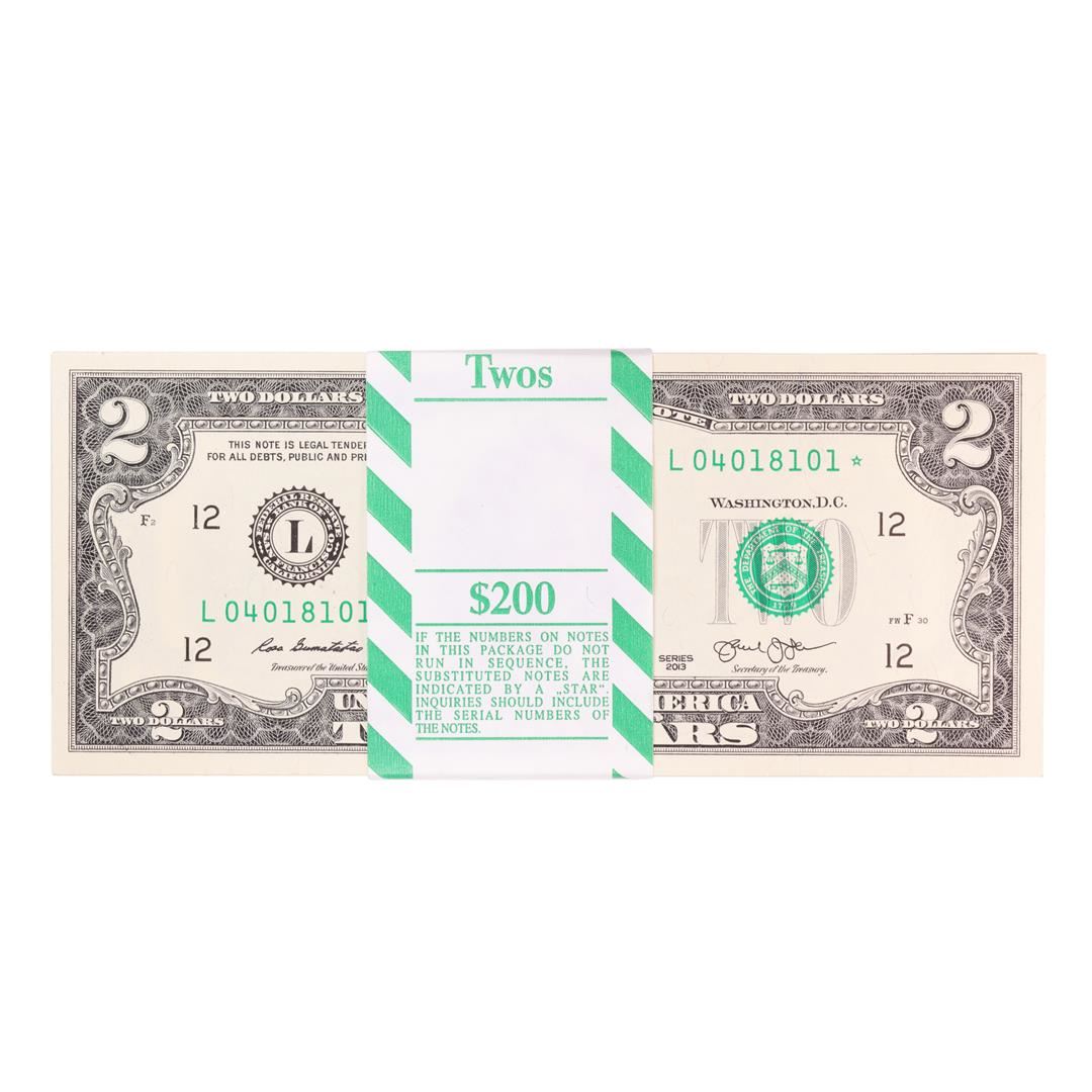 Pack of (100) Consecutive 2013 $2 Federal Reserve STAR Notes San Francisco