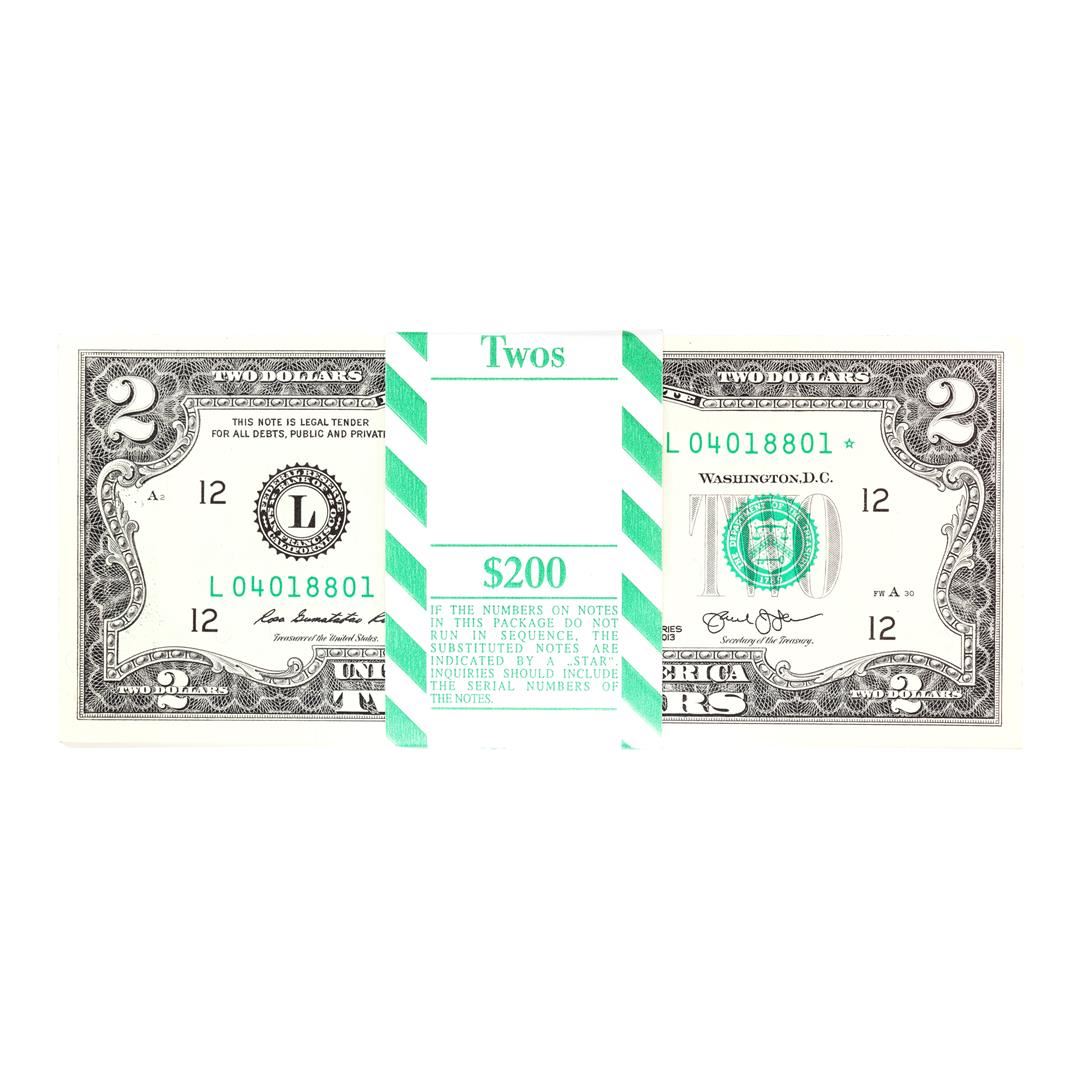 Pack of (100) Consecutive 2013 $2 Federal Reserve STAR Notes San Francisco
