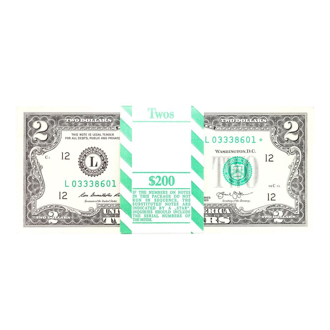 Pack of (100) Consecutive 2013 $2 Federal Reserve STAR Notes San Francisco
