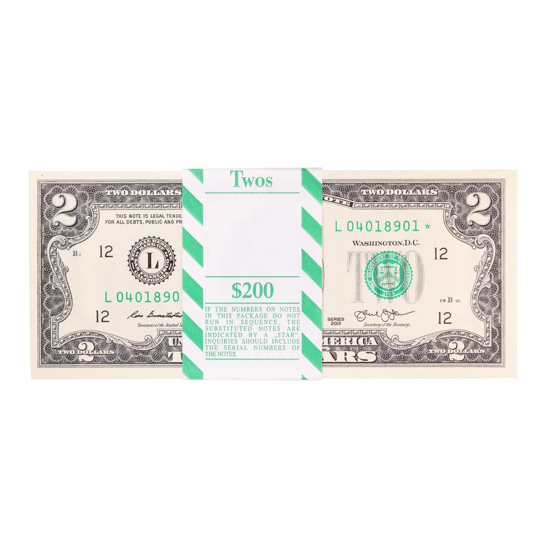 Pack of (100) Consecutive 2013 $2 Federal Reserve STAR Notes San Francisco
