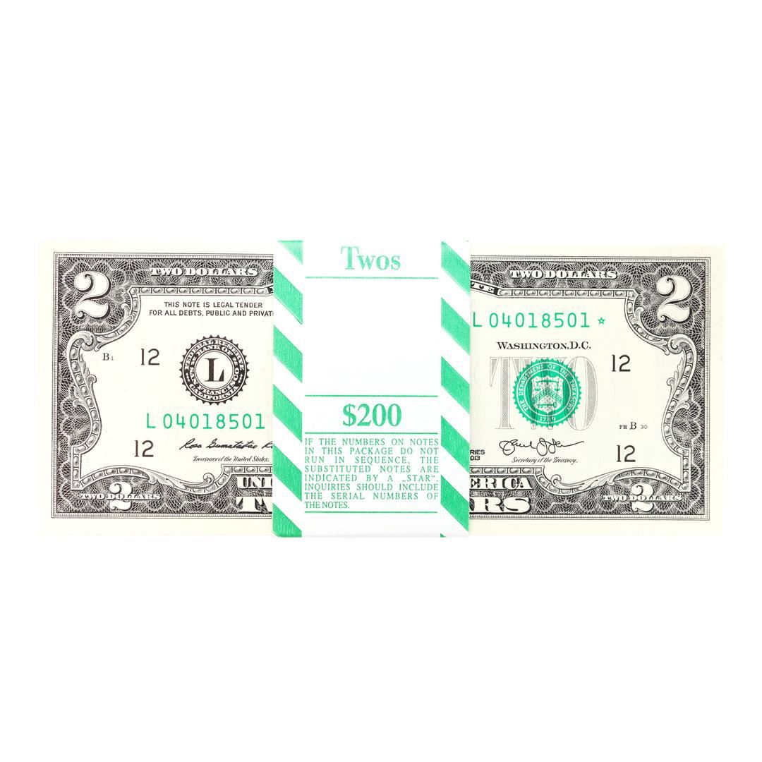 Pack of (100) Consecutive 2013 $2 Federal Reserve STAR Notes San Francisco