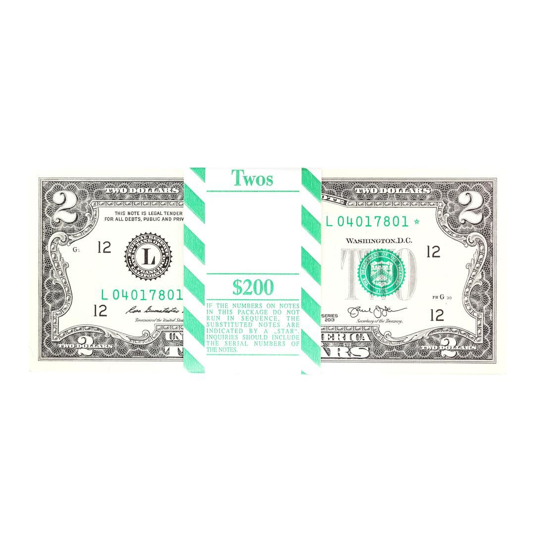 Pack of (100) Consecutive 2013 $2 Federal Reserve STAR Notes San Francisco
