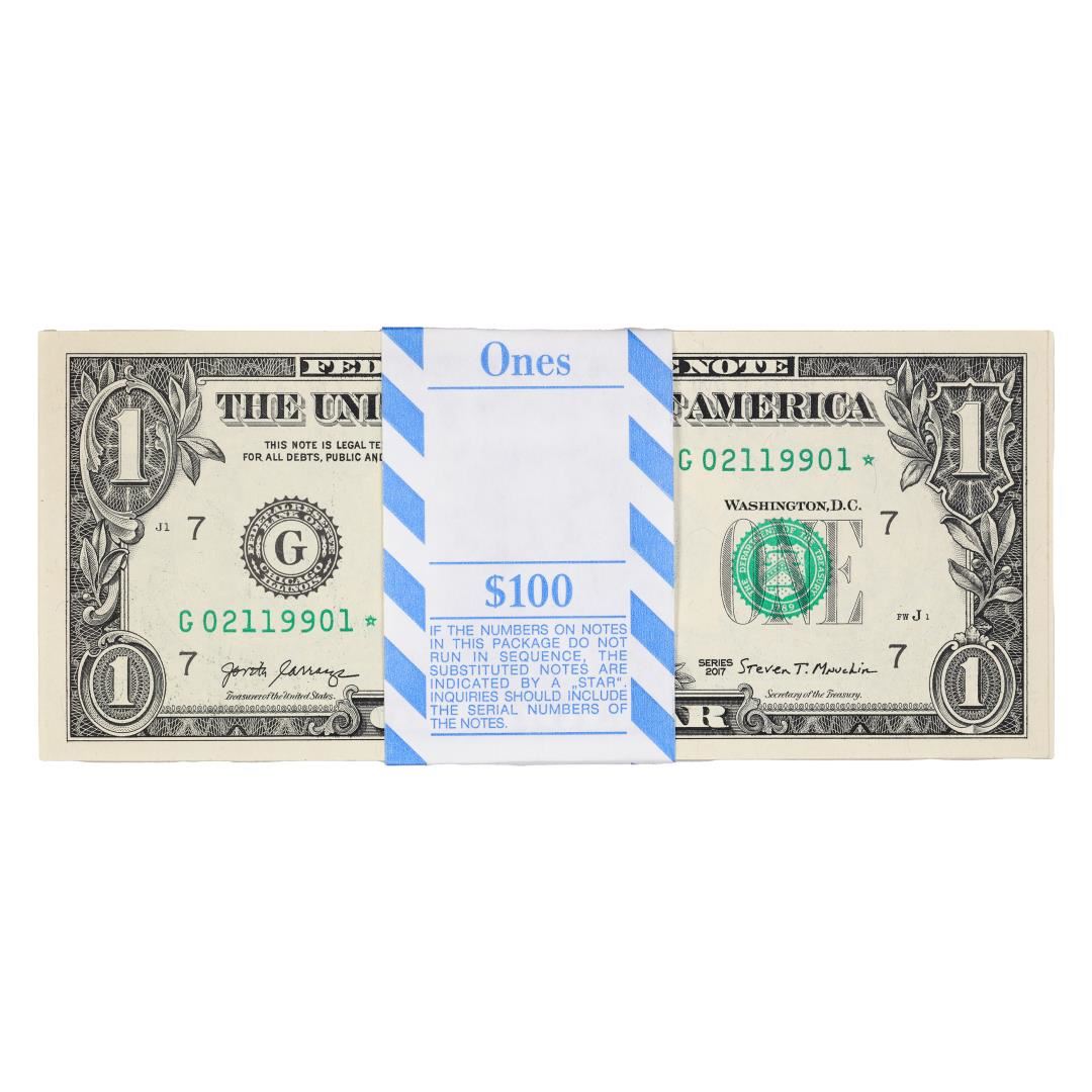 Pack of (100) Consecutive 2017 $1 Federal Reserve STAR Notes Chicago