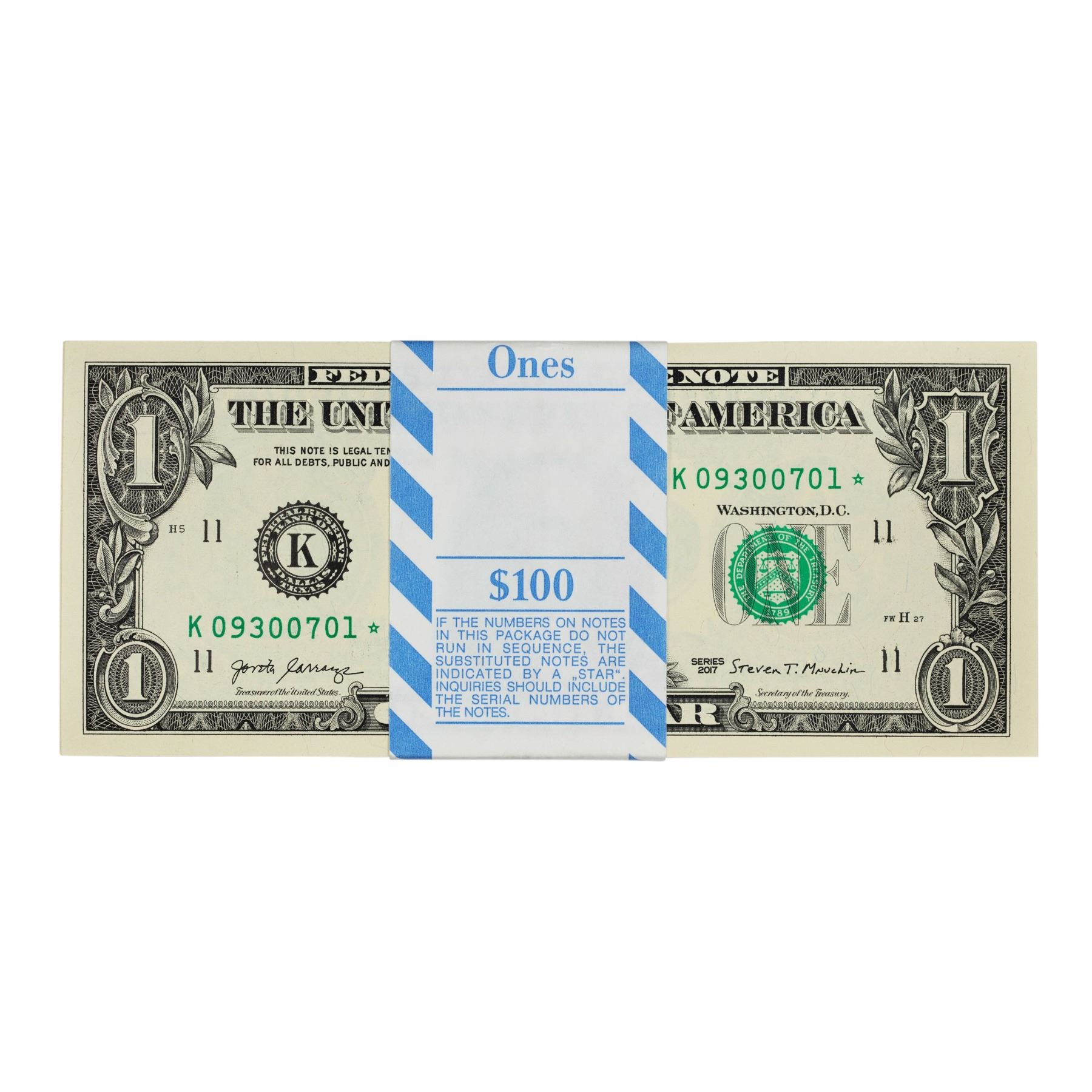 Pack of (100) Consecutive 2017 $1 Federal Reserve STAR Notes Dallas