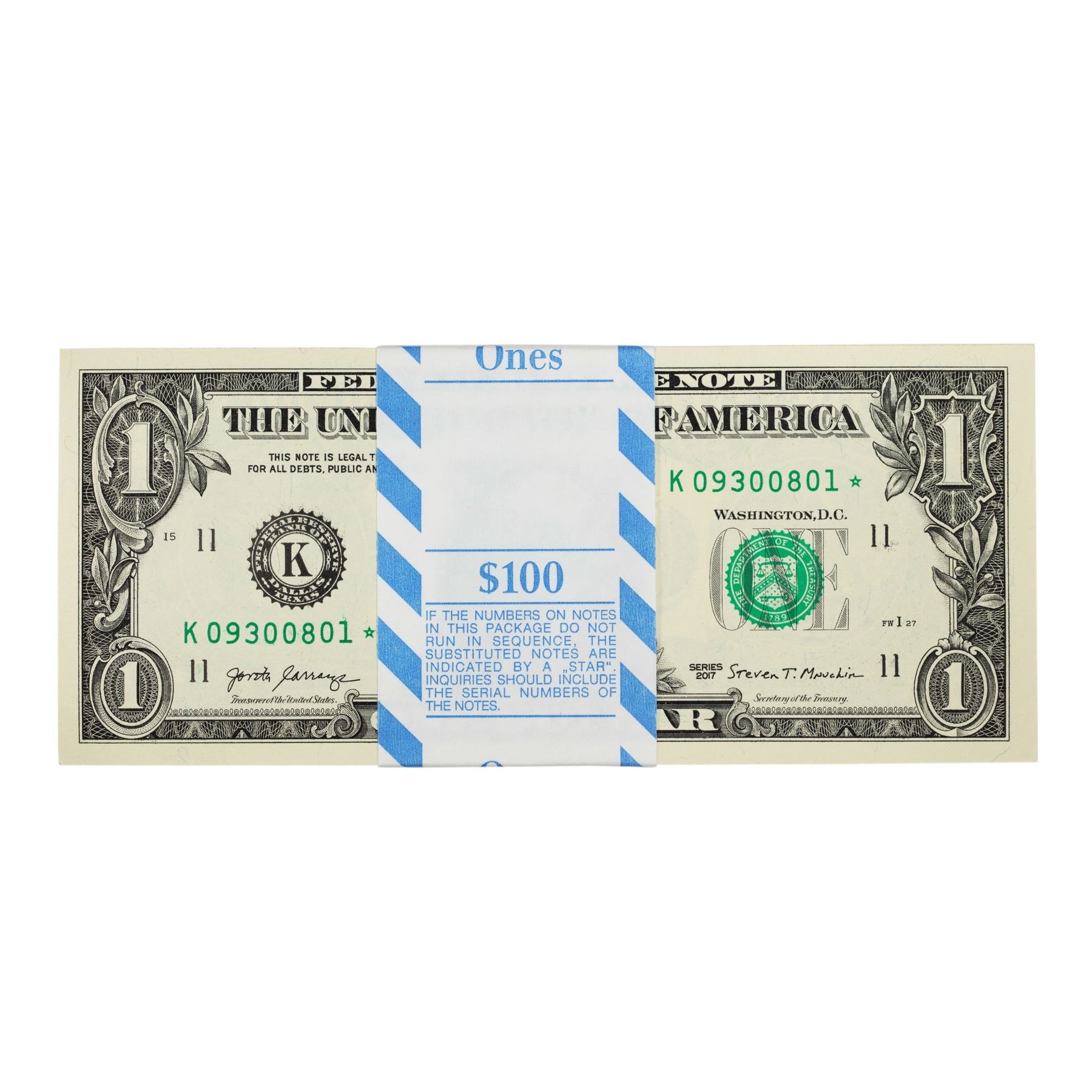 Pack of (100) Consecutive 2017 $1 Federal Reserve STAR Notes Dallas