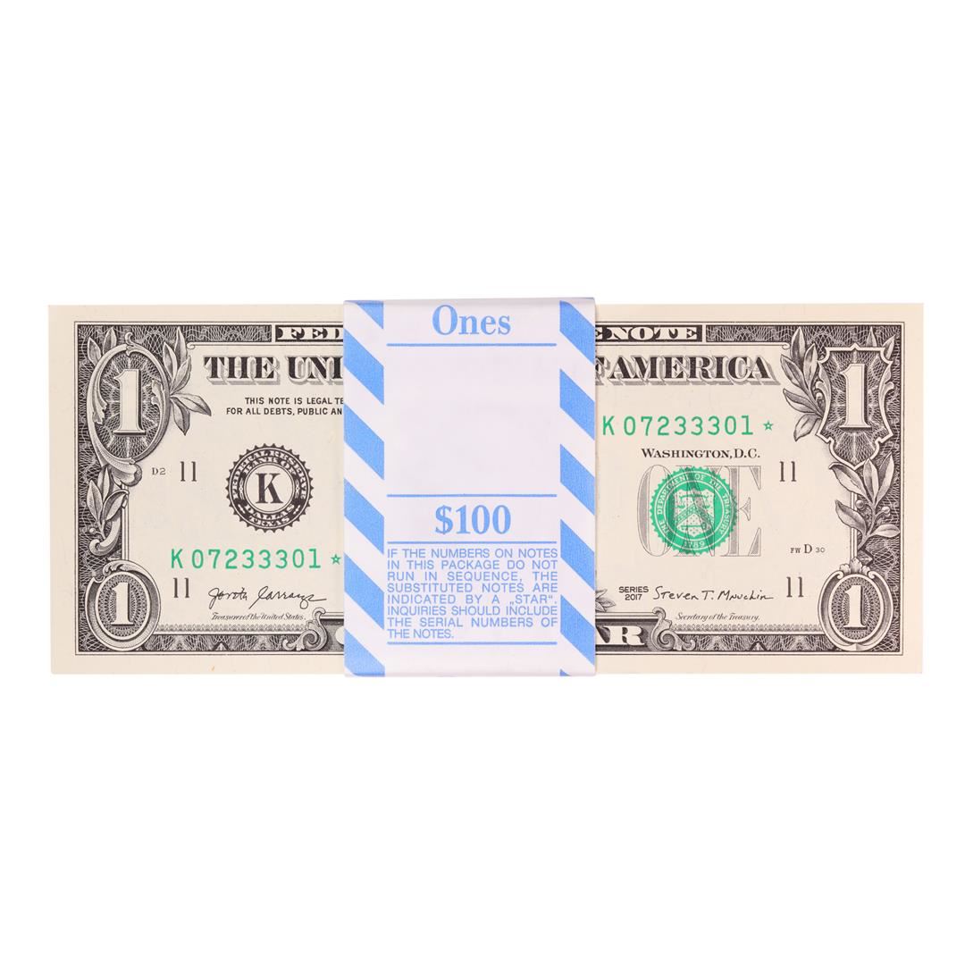 Pack of (100) Consecutive 2017 $1 Federal Reserve STAR Notes Dallas