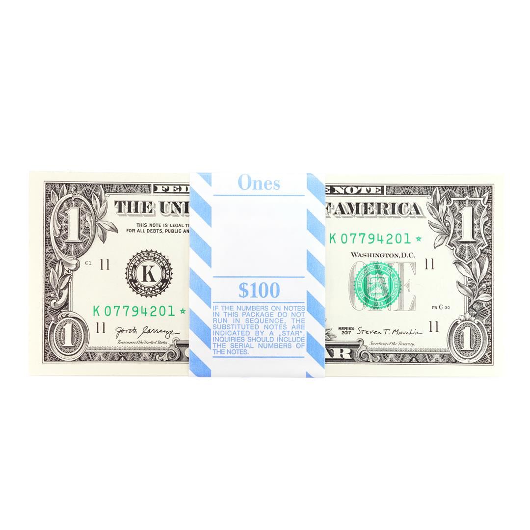 Pack of (100) Consecutive 2017 $1 Federal Reserve STAR Notes Dallas