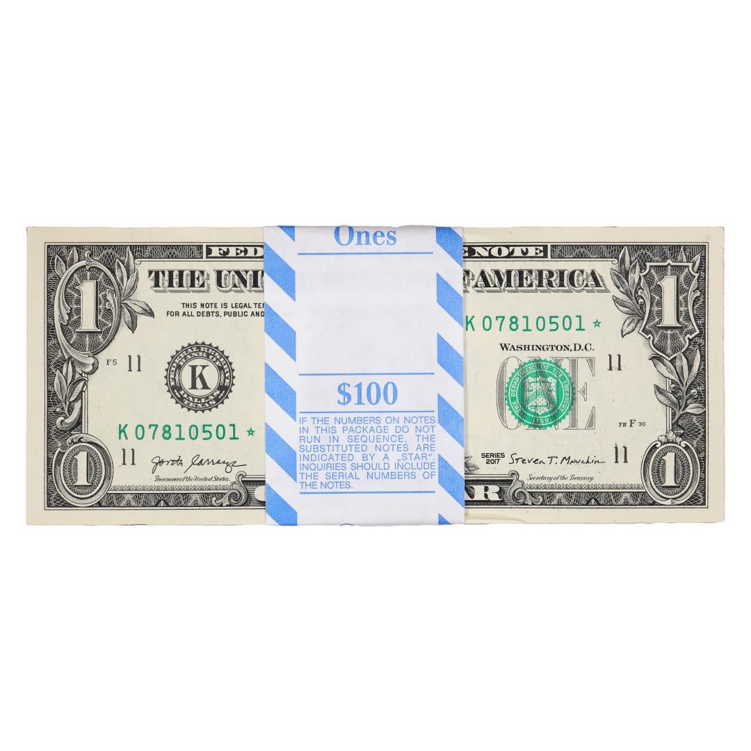 Pack of (100) Consecutive 2017 $1 Federal Reserve STAR Notes Dallas