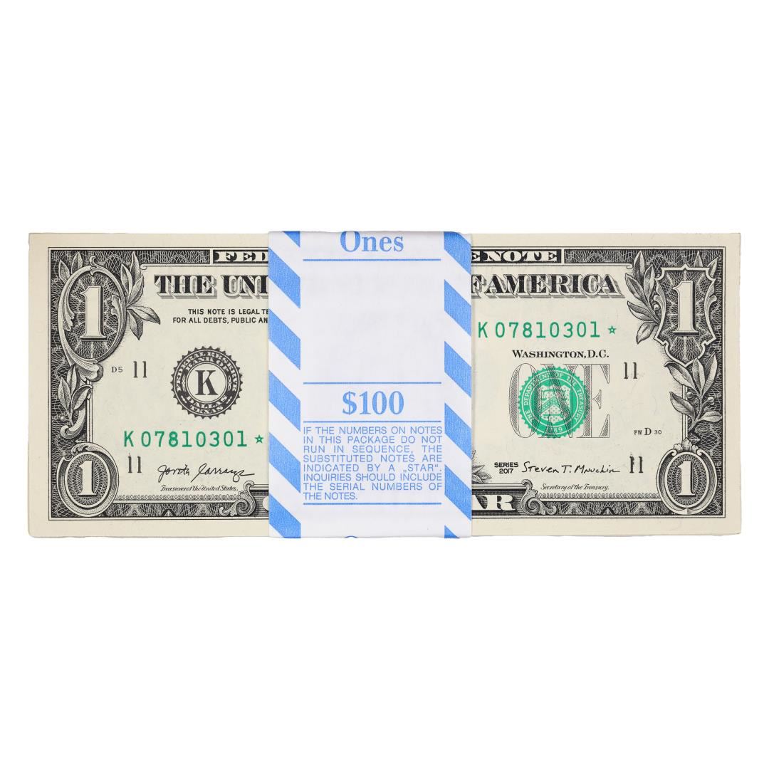 Pack of (100) Consecutive 2017 $1 Federal Reserve STAR Notes Dallas