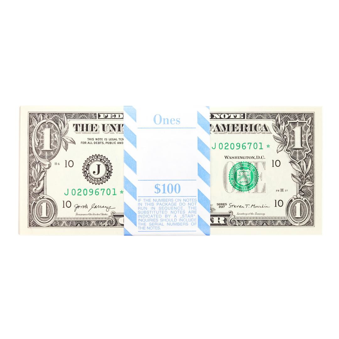 Pack of (100) Consecutive 2017 $1 Federal Reserve STAR Notes Kansas City