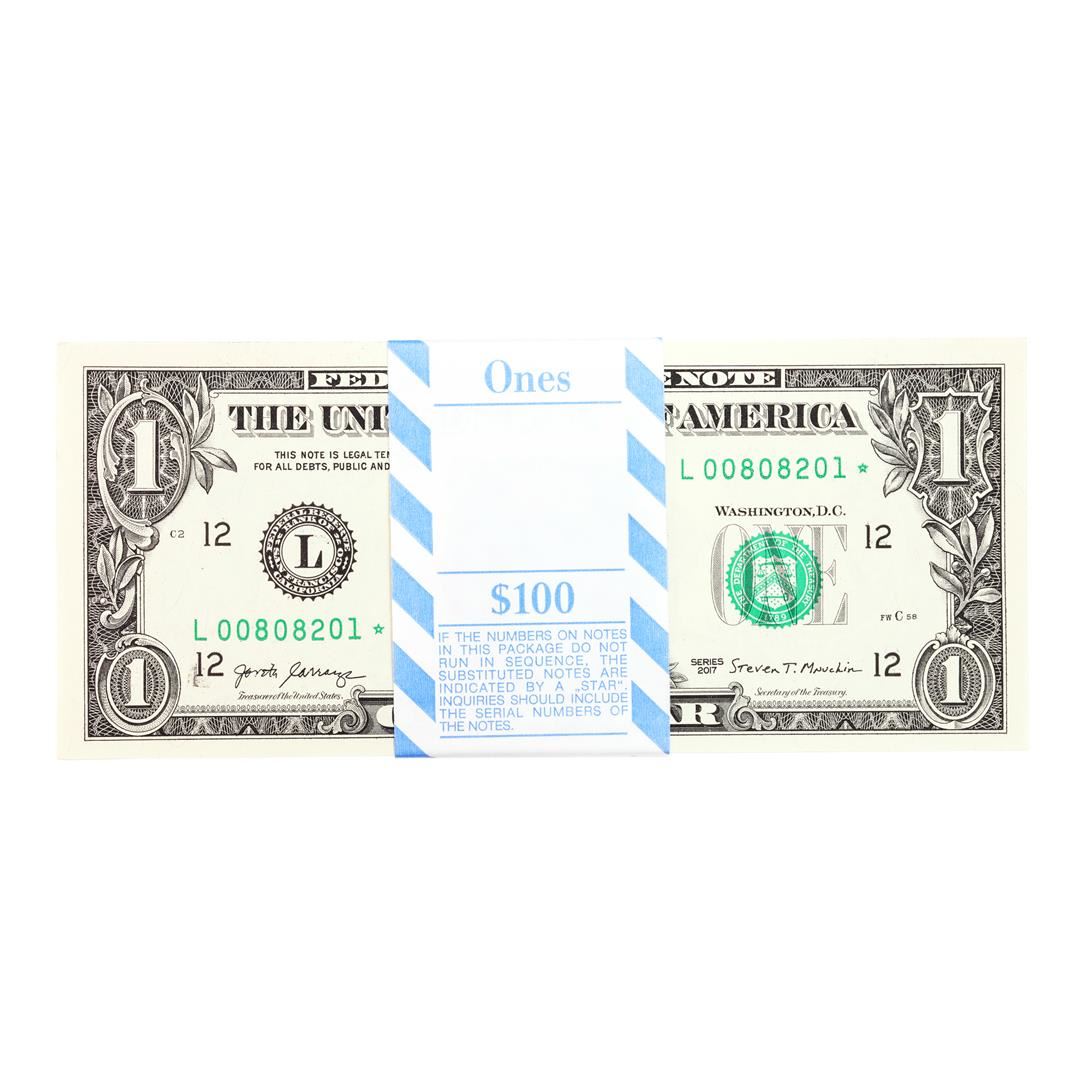 Pack of (100) Consecutive 2017 $1 Federal Reserve STAR Notes San Francisco
