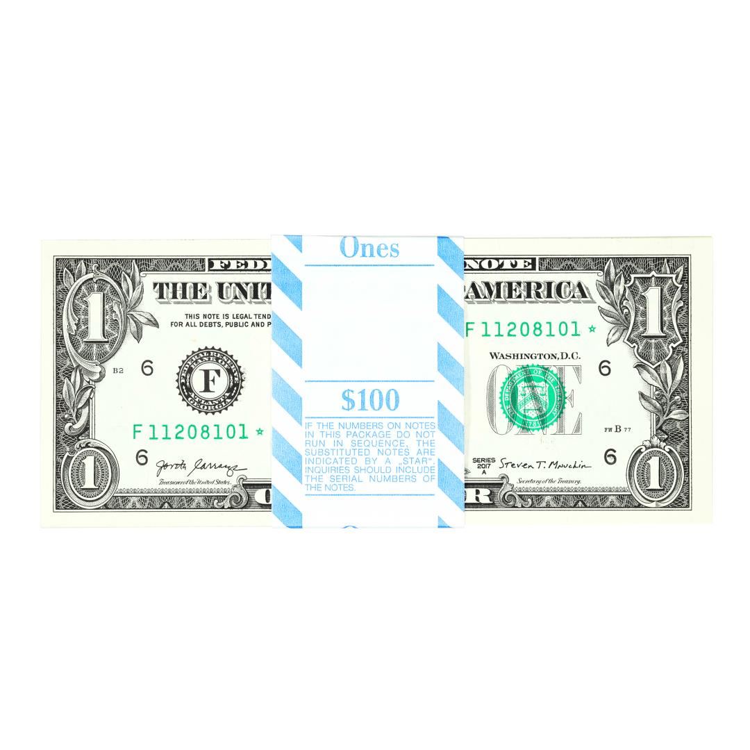 One Pack of (100) Consecutive 2017A $1 Federal Reserve STAR Notes Atlanta.