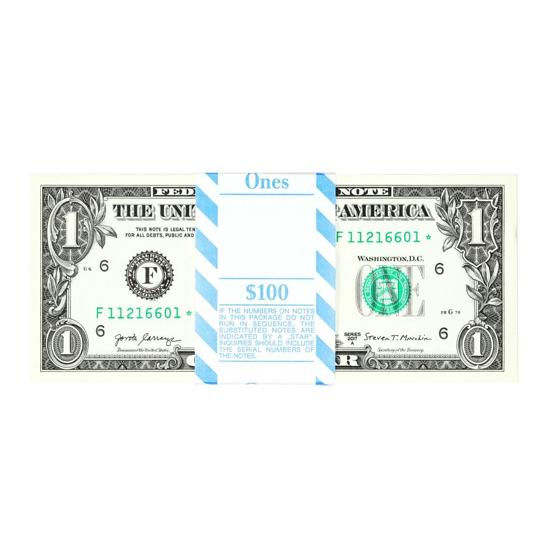 One Pack of (100) Consecutive 2017A $1 Federal Reserve STAR Notes Atlanta.