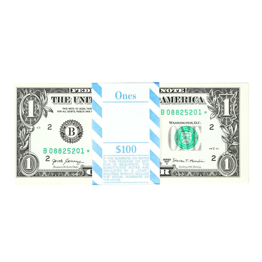 Pack of (100) Consecutive 2017A $1 Federal Reserve STAR Notes New York